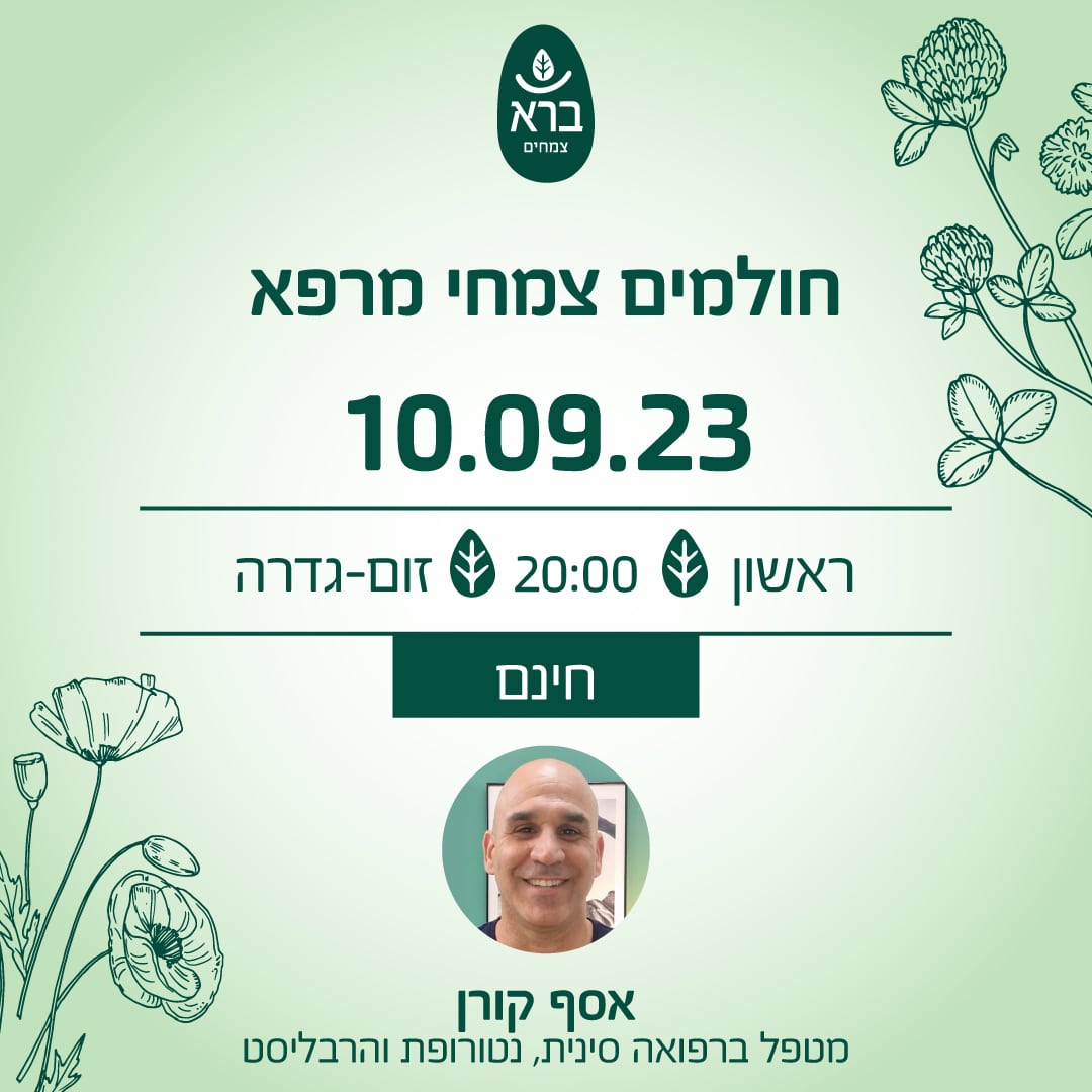בהתאם לתוצאות האבחון, תינתנה המלצות אישיות בתחום התזונה וצמחי המרפא.