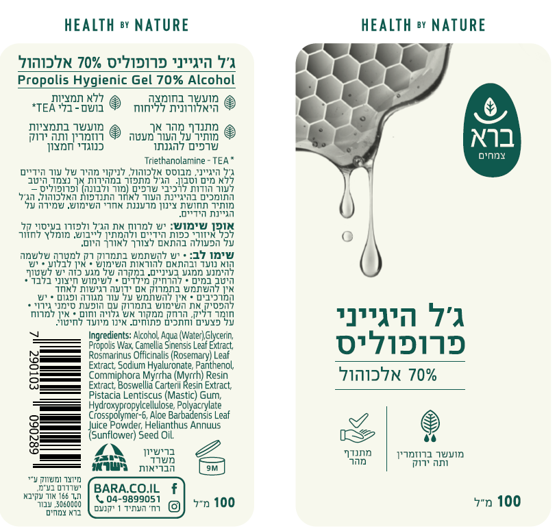 Alcohol, Aqua (Water), Glycerin, Propolis Wax, Camellia Sinensis Leaf Extract, Rosmarinus Officinalis (Rosemary) Leaf Extract, Sodium Hyaluronate, Panthenol, Commiphora Myrrha (Myrrh) Resin Extract, Boswellia Carterii Resin Extract, Pistacia Lentiscus (Mastic) Gum, Hydroxypropylcellulose, Polyacrylate Crosspolymer-6, Aloe Barbadensis Leaf Juice Powder, Helianthus Annuus (Sunflower) Seed Oil.