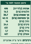 ערכים תזונתיים: