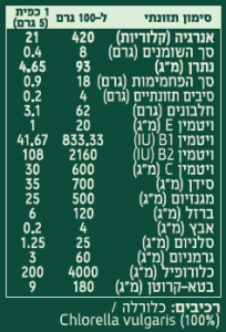 מכילה כמות יפה של סיבים תזונתיים , חומצות שומן חיונית מסוג אומגה 3 וחומצות גרעין RNA ו DNA.