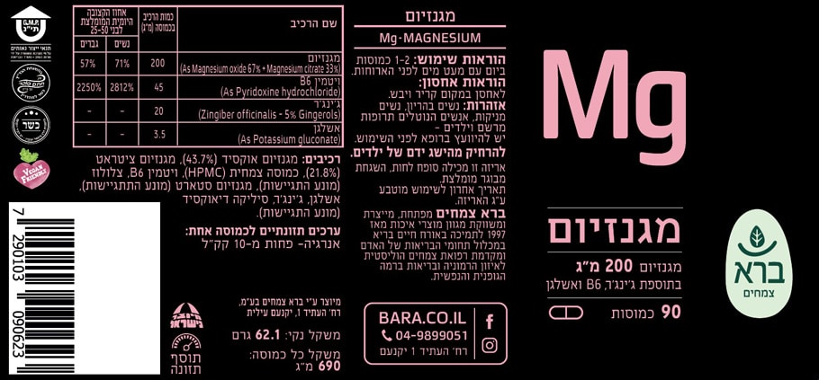 מגנזיום 200 מ”ג בתוספת ג’ינגר, B6, ואשלגן.