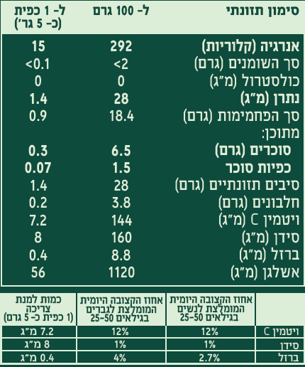 אופן השימוש: לערבב 0.5-2 כפיות ( 1 כפית = כ- 5 גרם) ביום
