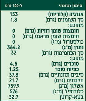 הכתוב מסתמך על גישות הרבליסטיות ונטורופתיות מסורתיות, מאמרים מדעיים ונתונים תזונתיים ממאגרי מידע רשמיים המתייחסים באופן כללי לצמח. הנתונים התזונתיים עשויים להשתנות מעת לעת בהתאם לתנאי הסביבה והגידול של הצמח. למען הסר ספק המידע אינו מהווה המלצה רפואית מוסמכת ואינו מיועד להנחות את הציבור או לשמש לגביו כהמלצה או הוראה או עצה לשימוש או שינוי או הורדה של תרופה כלשהי, ואין בו תחליף לייעוץ רפואי פרטני או אחר. נשים בהיריון, נשים מניקות, ילדים, אנשים החולים במחלות כרוניות והנוטלים תרופות מרשם – יש להיוועץ ברופא לפני השימוש.