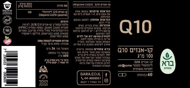 100 מ״ג קו-אנזים Q10 ליפוזומלי פטנטי לספיגה משופרת